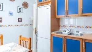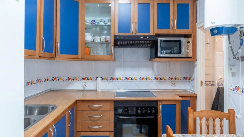 It has 3 bedrooms, 2 full bathrooms (the washing machine is in one of them), a beautiful furnished living room with sofa, TV and dining area and a completely equipped kitchen with microwave besides all the basics.
